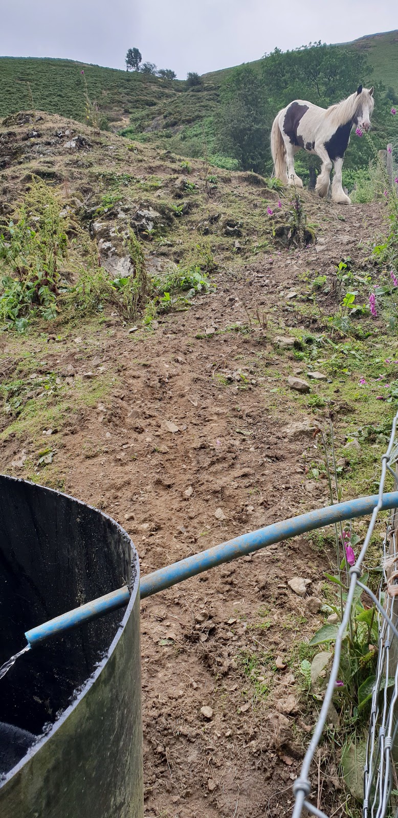 thanks to the appliance of science the now abundant water supply for the equines meant that there was some surplus and this filled a container for the lazy fat pigs Carole and Amanda which in turn then gave some surplus and created said lazy fat pigs a nice cool wallow.